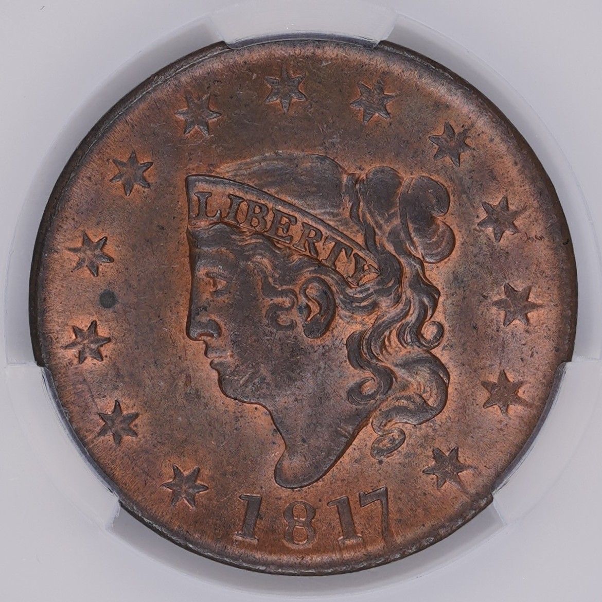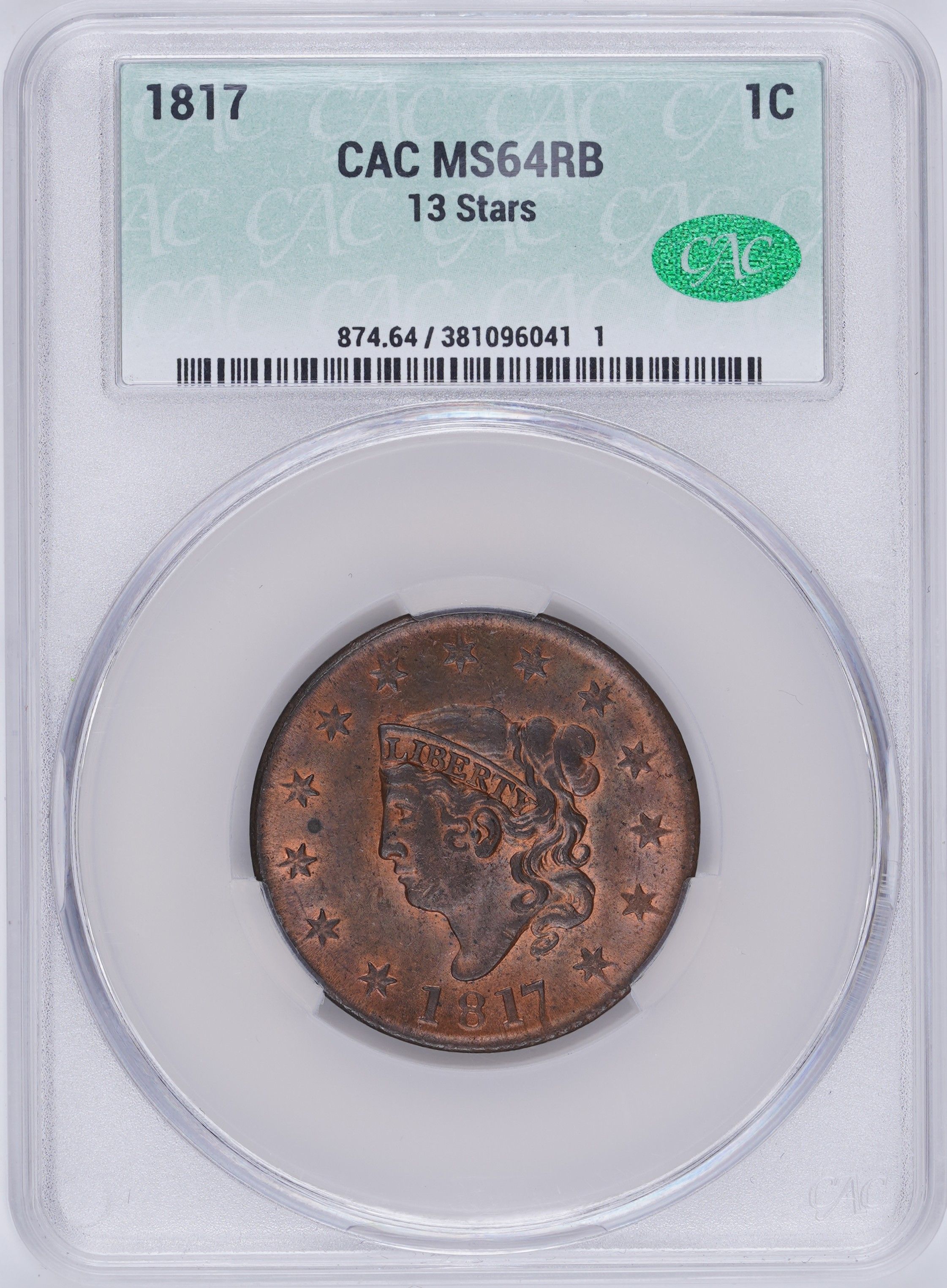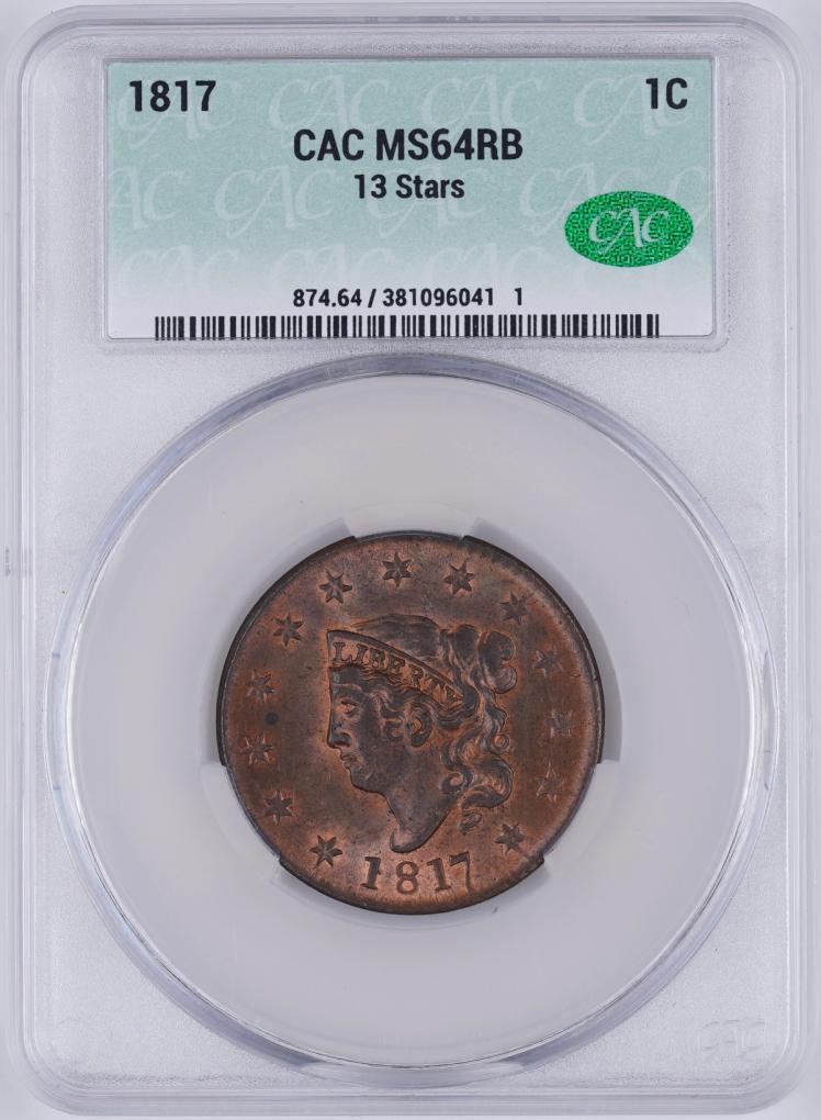 1817 1C Matron Head Large Cent CAC MS64RB