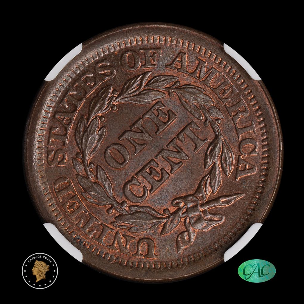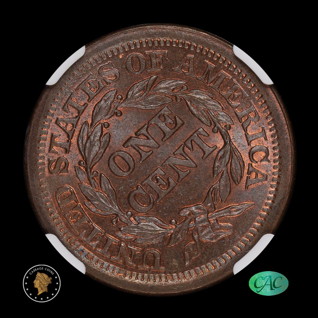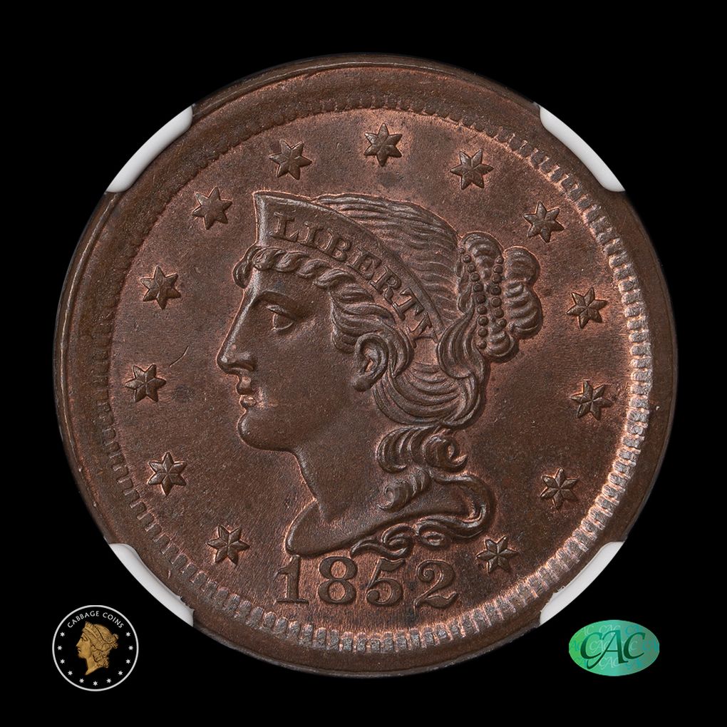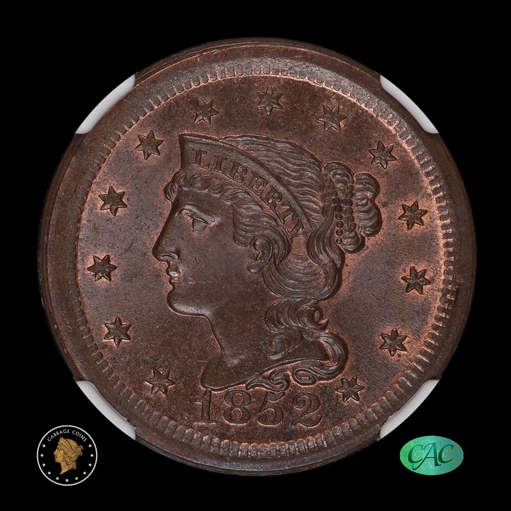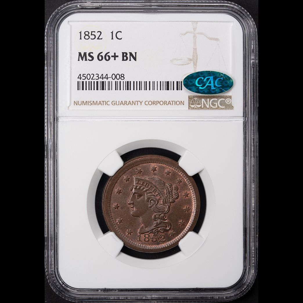 1852 1C Coronet Head Large Cent NGC MS66+ BN CAC