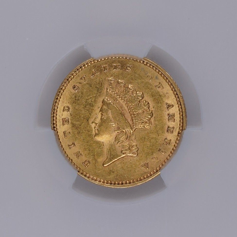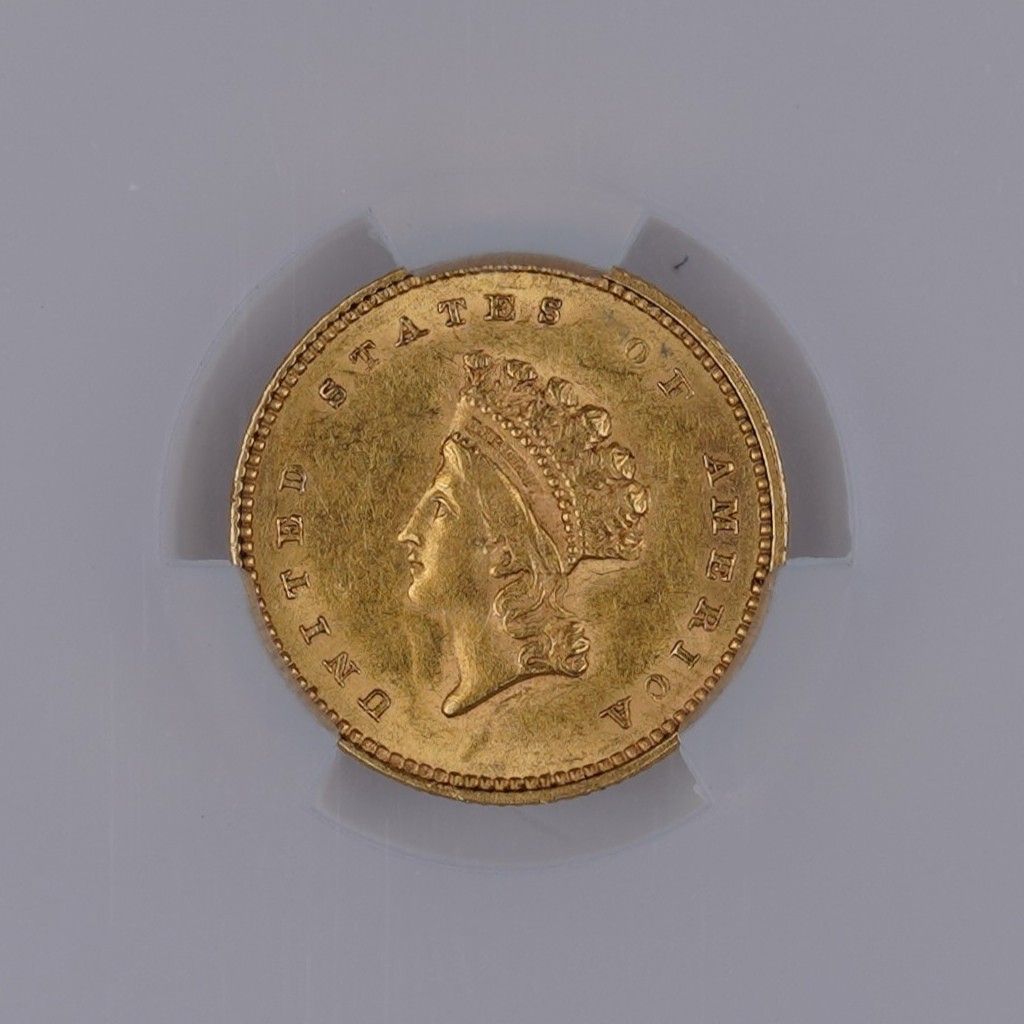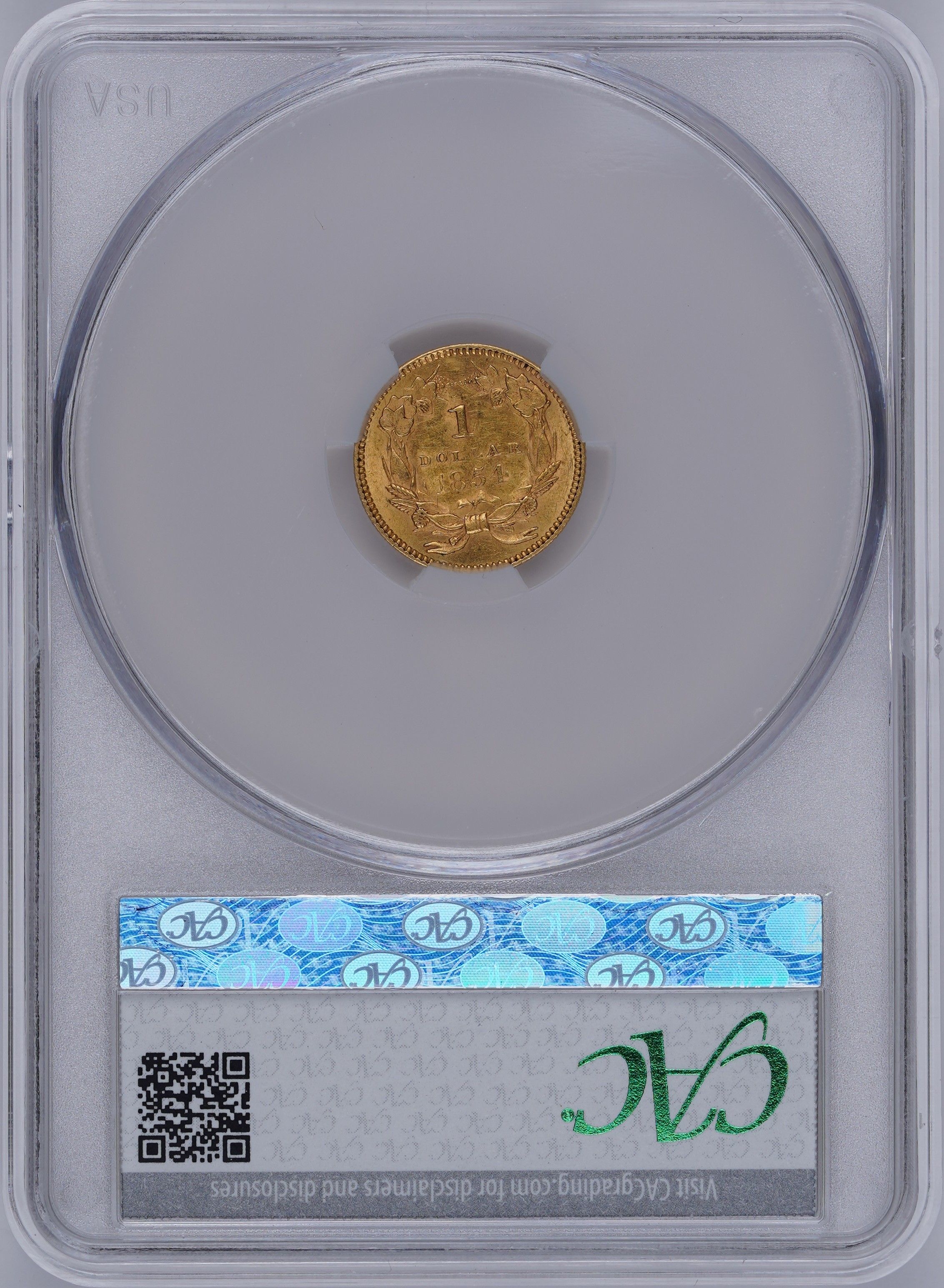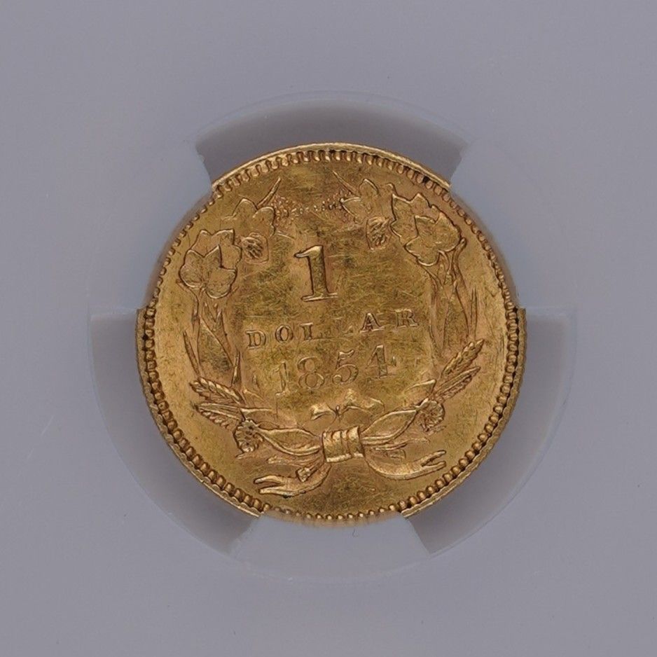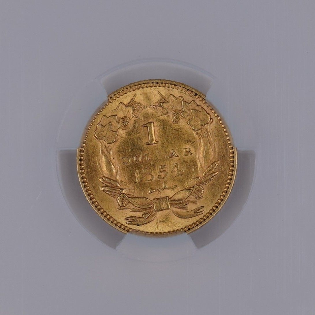 Type 2 gold dollars were only made for 3 years (1854-1856). Because of this, they are highly sought after by type collectors. A type collector is someone that attempts to get one nice example (or not so nice, depending on taste/style) of everytype of US coin. This particular example is graded AU58 by the CAC grading company and has great surfaces and eye appeal.