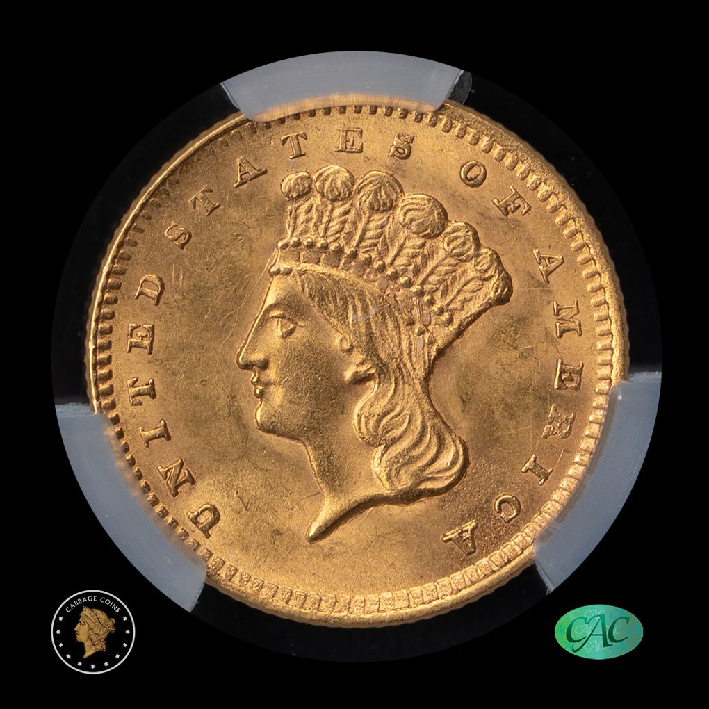 The 1856 is one of the more common dates for the type 3 gold dollar, but this makes a pretty good type coin for anybody seeking a gold dollar in their set. Eye appeal is excellent and it is approved by CAC.