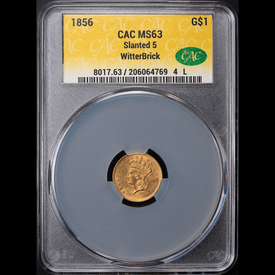 1856 G$1 Gold Dollar Slanted 5 CAC MS63 Witterbrick (Gold)