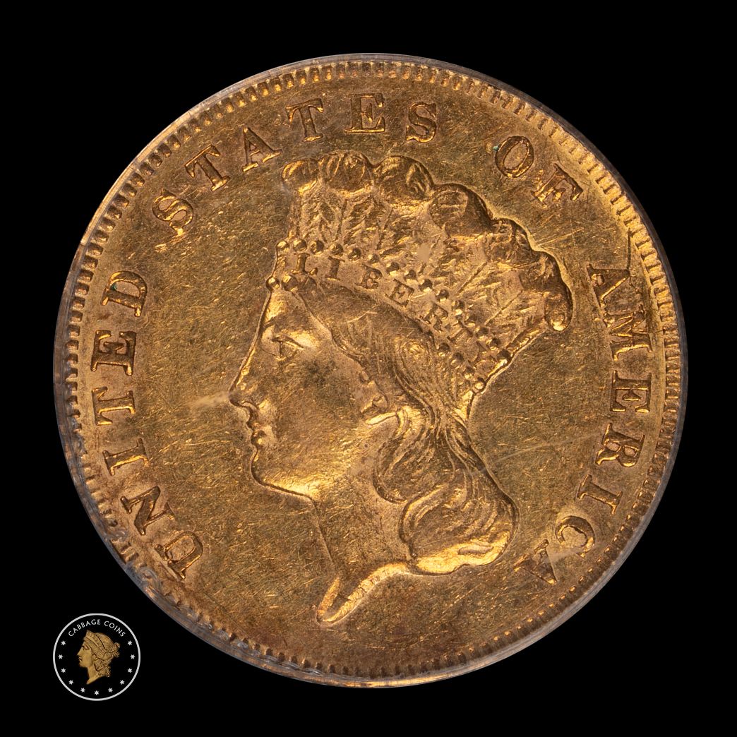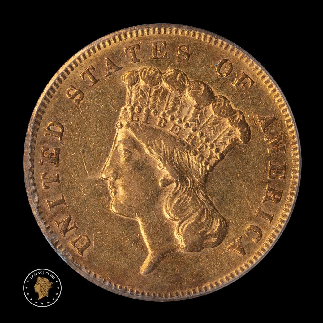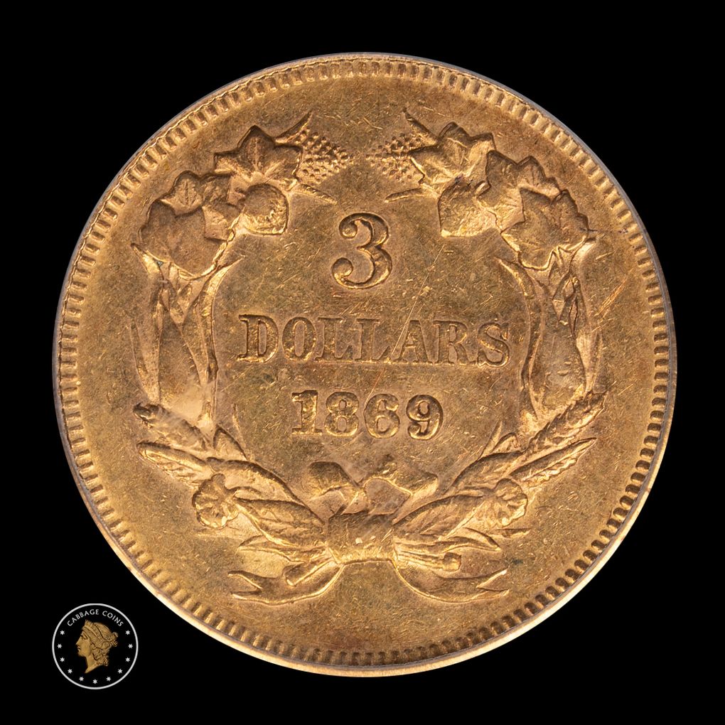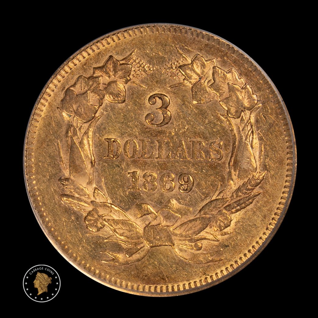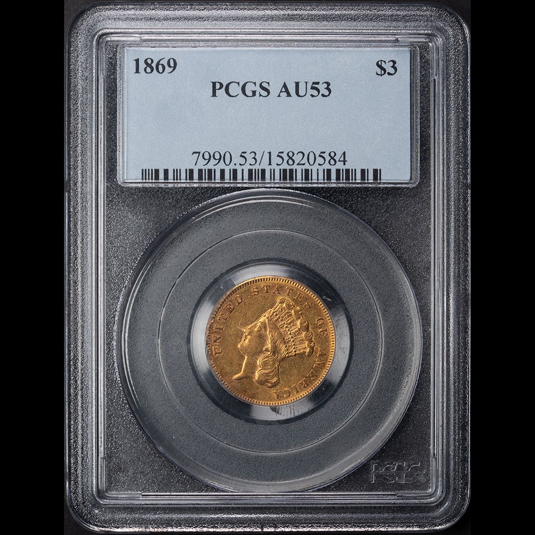 1869 $3 Princess Gold PCGS AU53