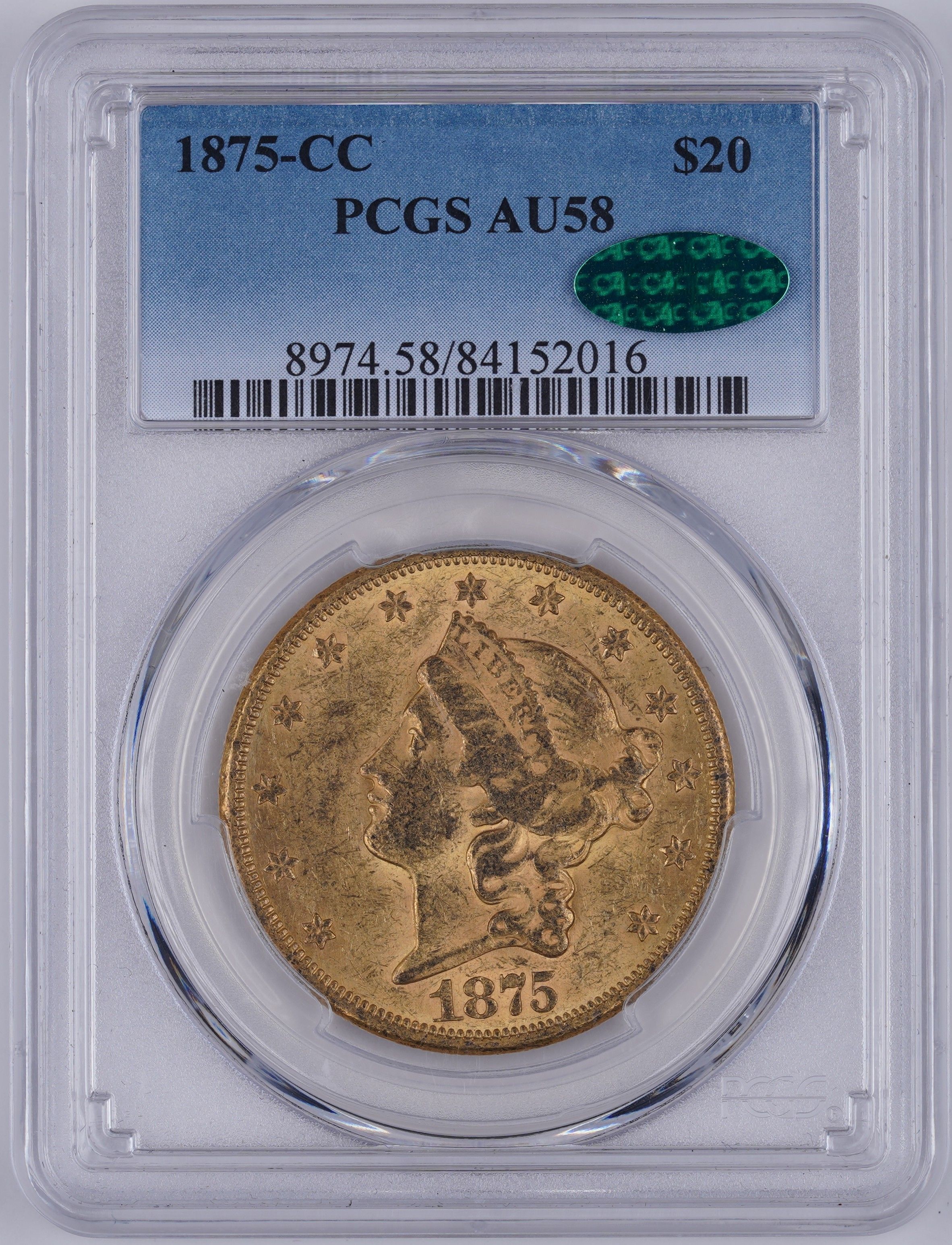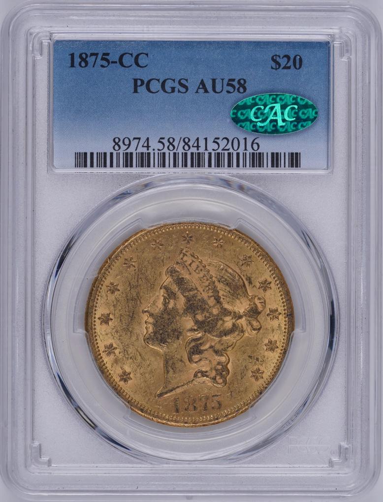 1875-CC $20 Liberty Head Double Eagle PCGS AU58 CAC