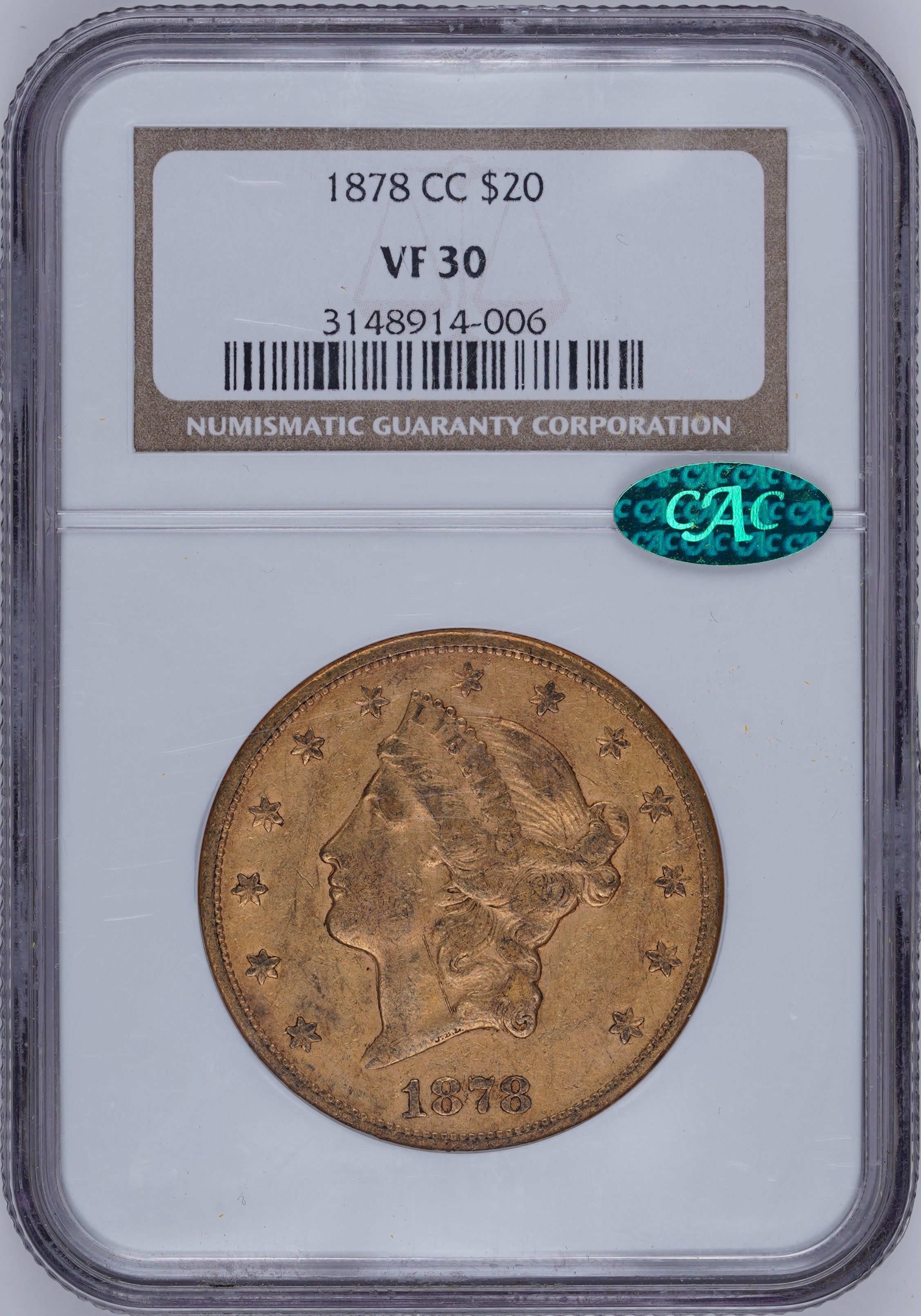1878-CC $20 Liberty Head Double Eagle NGC VF30 CAC