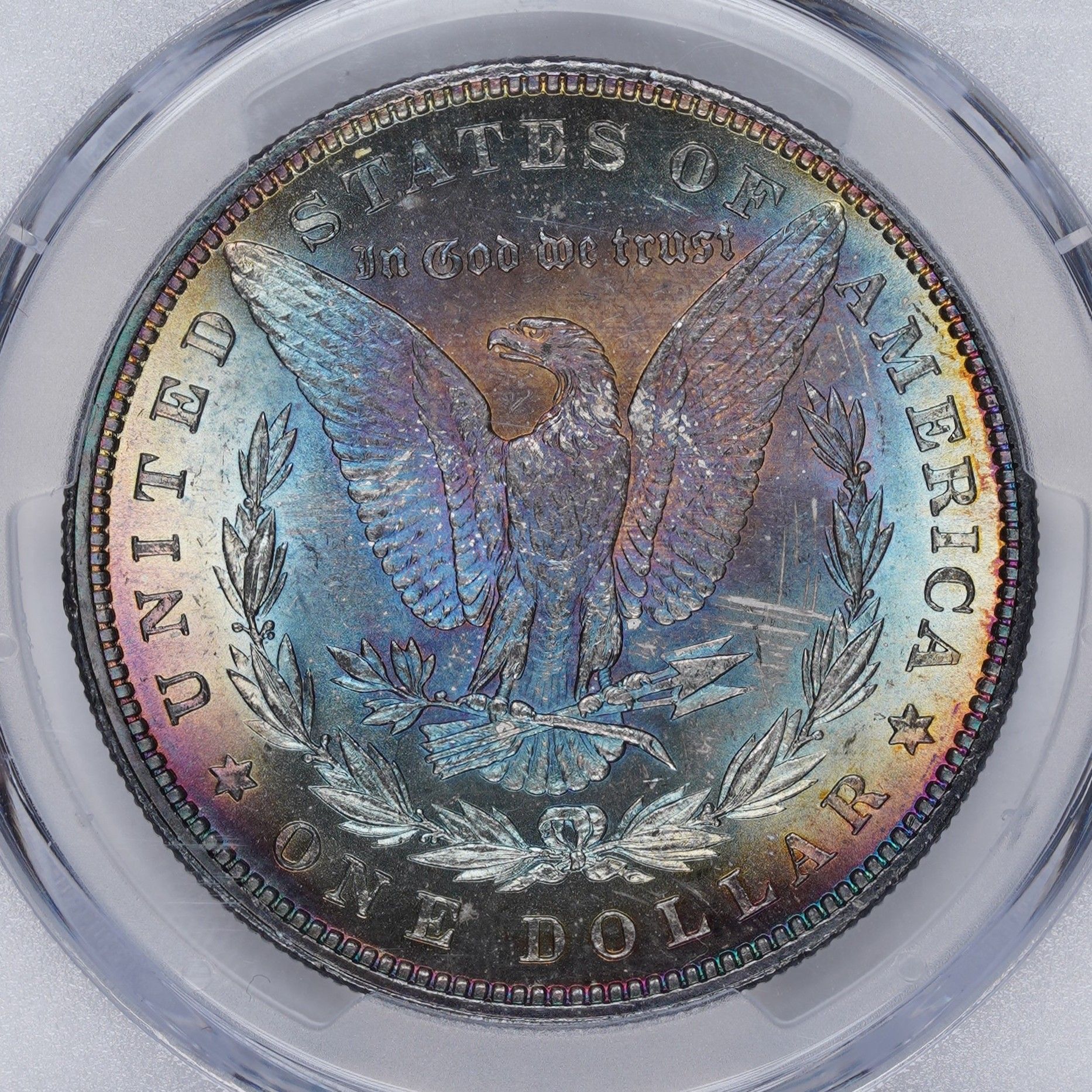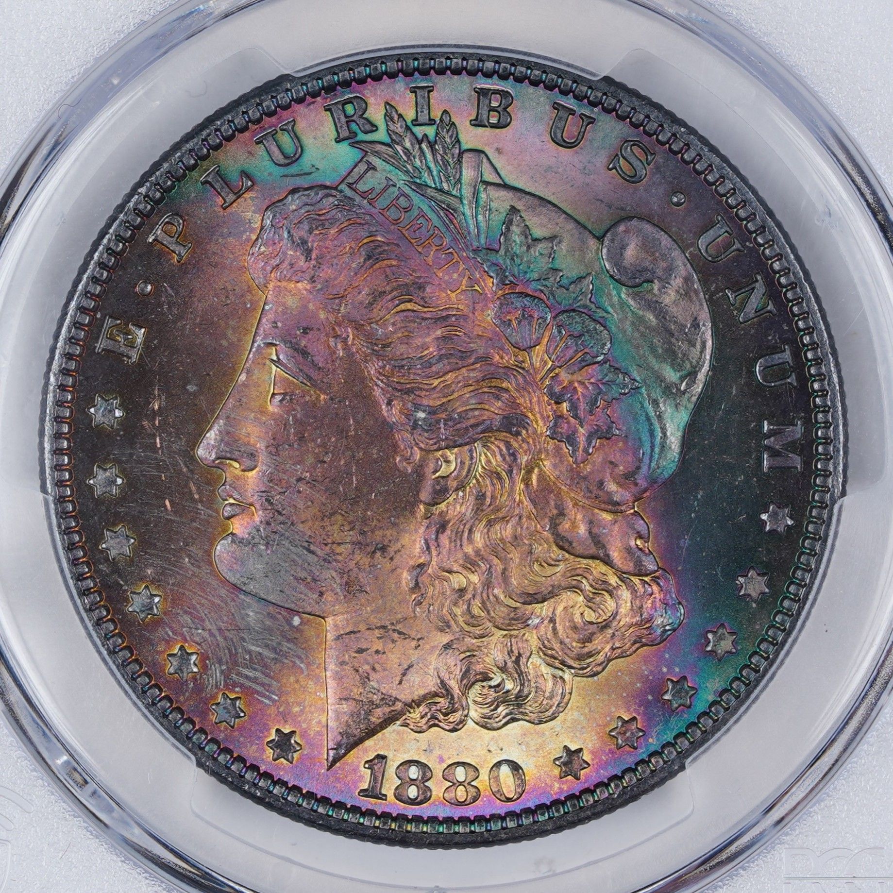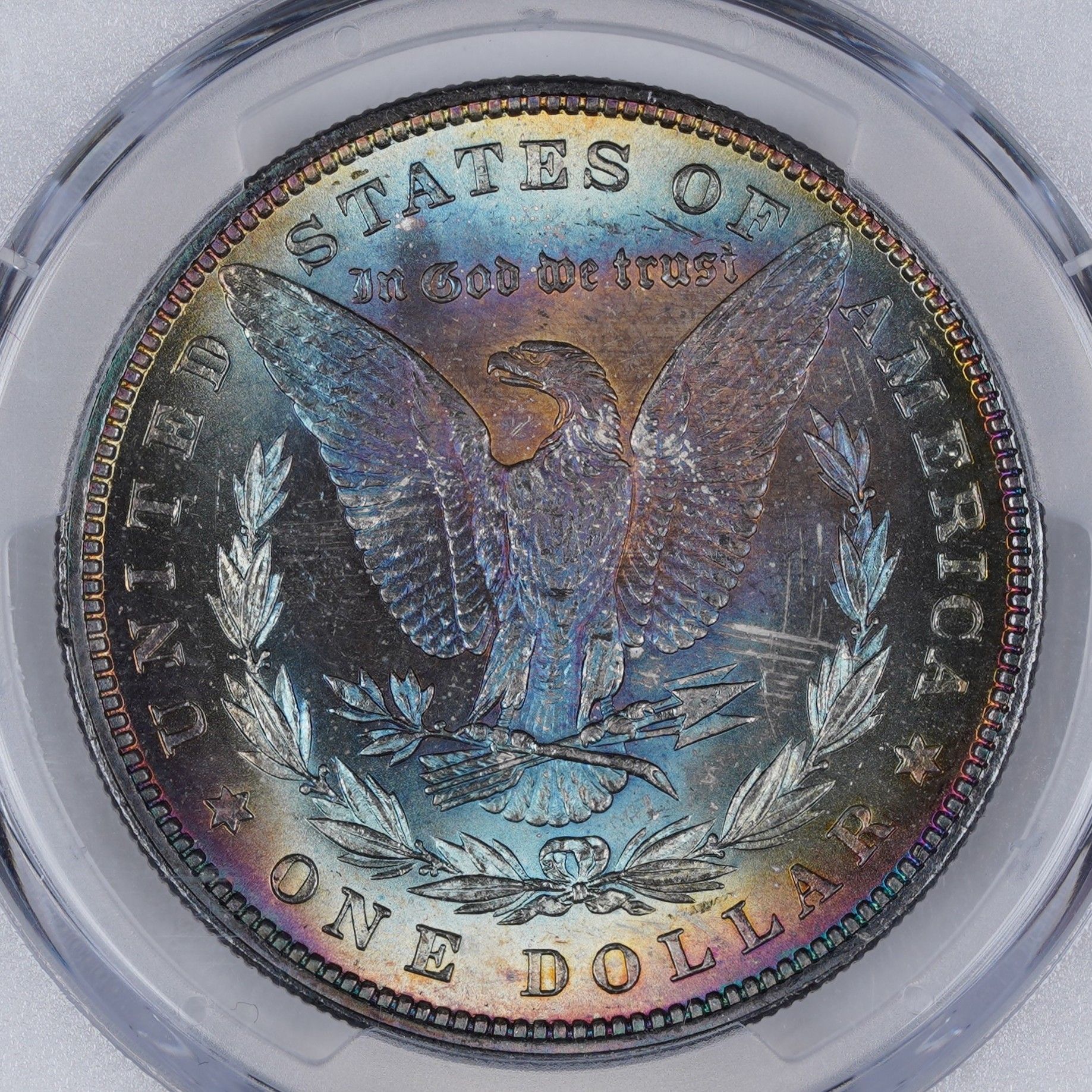 This piece is just incredible. The color on both sides is simply spectacular. Deep, rich tones of blues and reds. On top of which, this is a very difficult date to find rainbow colored toning. These Philadelphia mint coins circulated much more heavily than San Francisco mint issues which sat in Treasury vaults and gained colorful surfaces. This must have been one of the few bags for the P-mint that did not circulate!