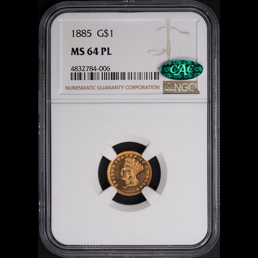 1885 G$1 Gold Dollar Type 3 NGC MS64 PL CAC