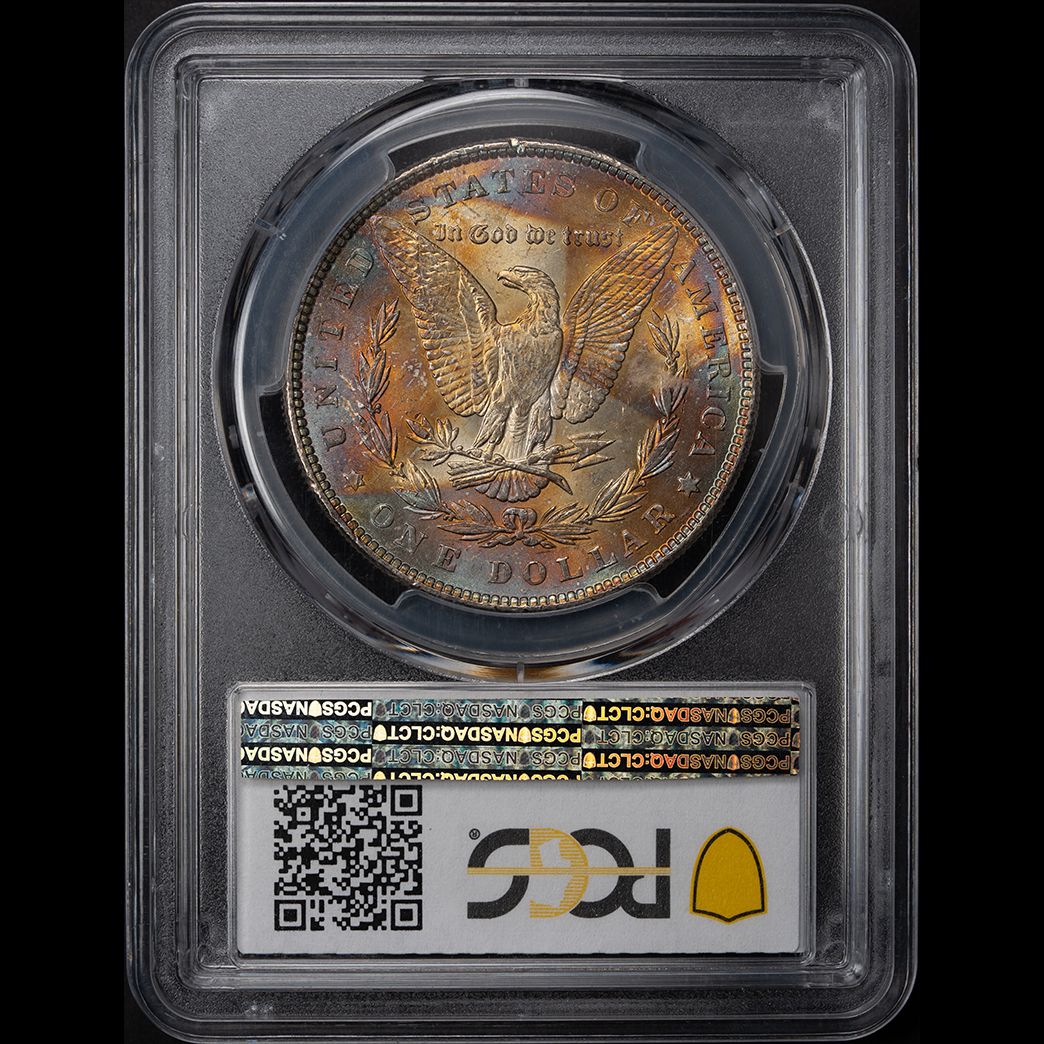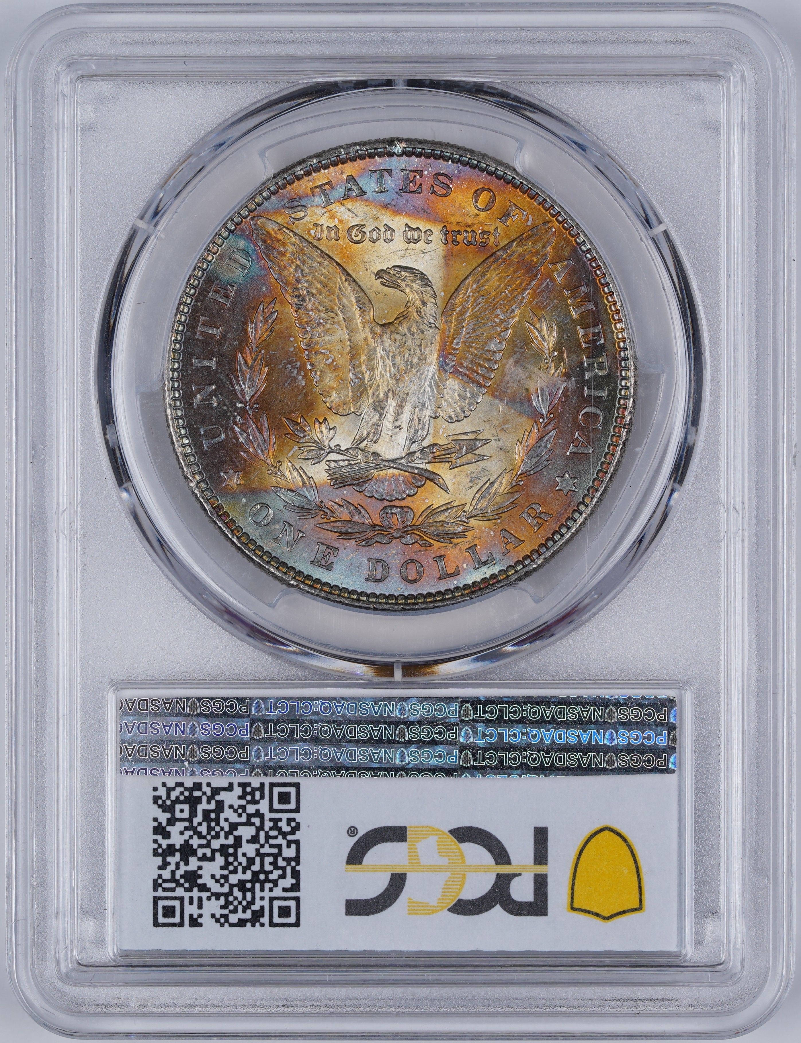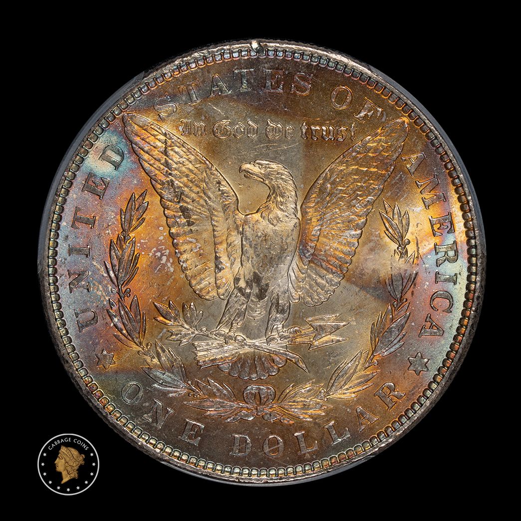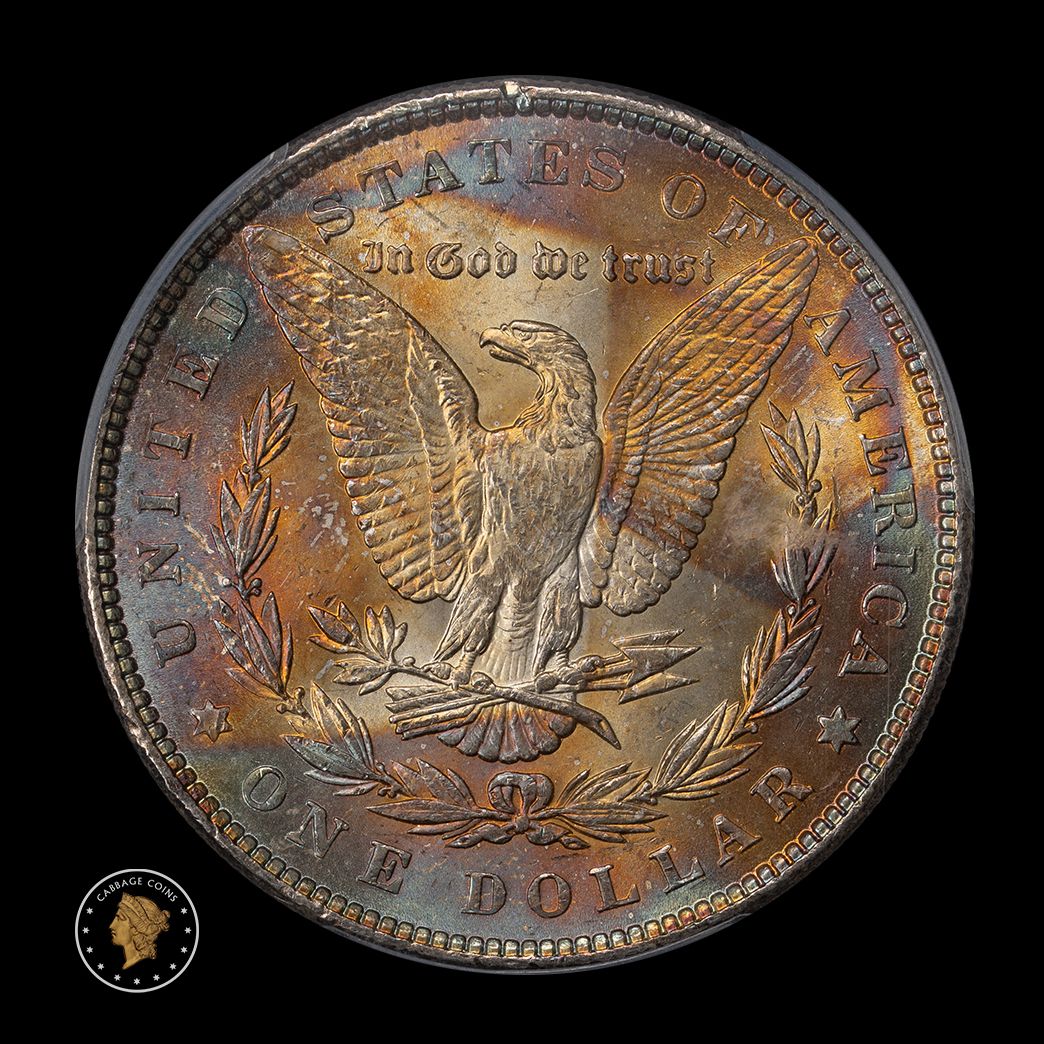 'End of Roll' toning comes from a reaction between the silver in the Morgan dollar and the sulfer content inside the paper used to create rolls of silver dollars. In the case of this extraordinary example, the coin was at the 'end of roll' on one side (likely the reverse), produced amazing colors, and then it was turned around and the same type of toning (end of roll) was produced on the other side as well! This is one of my favorite pieces and will surely be yours as well.