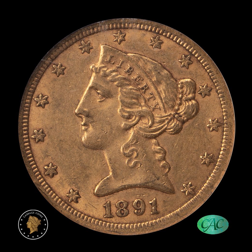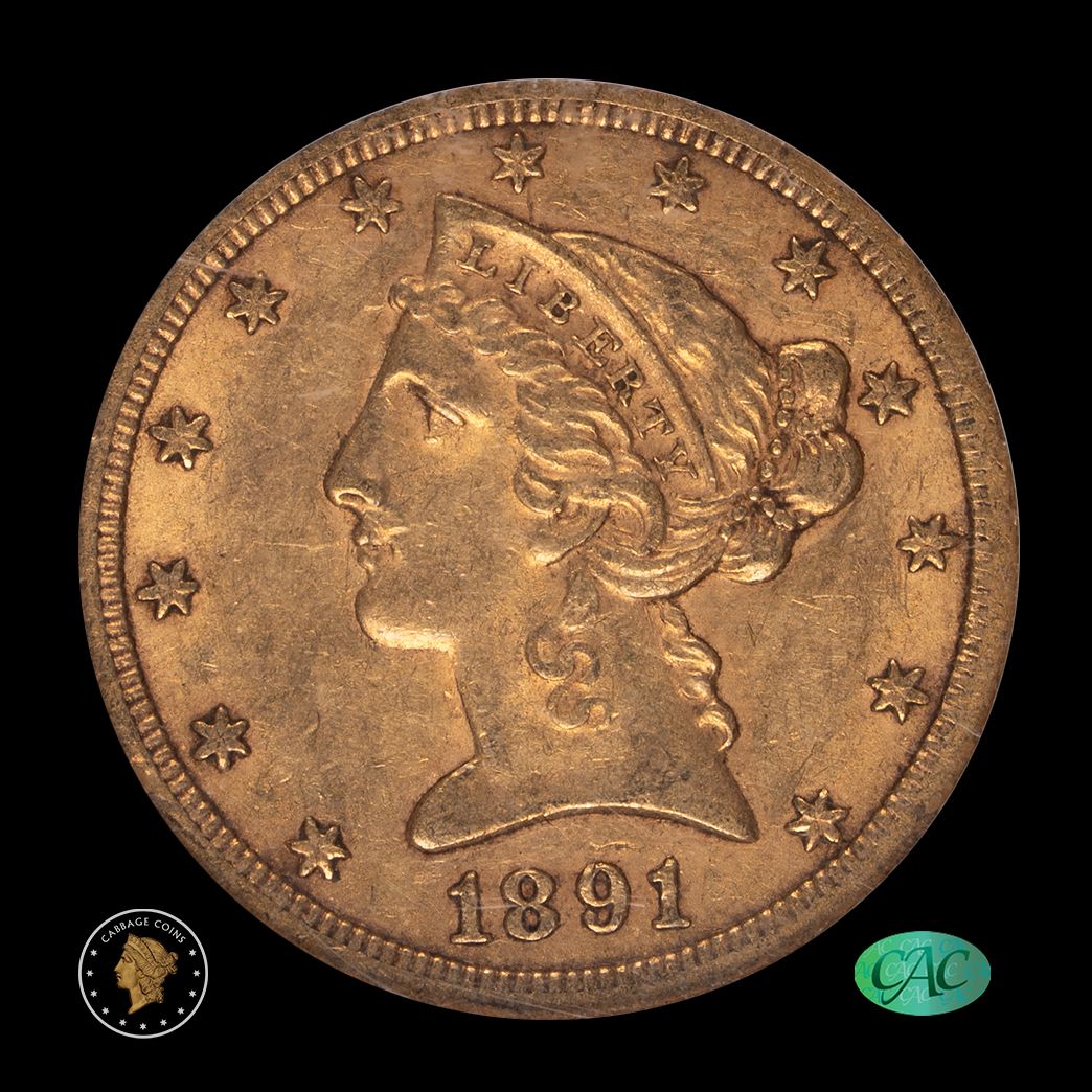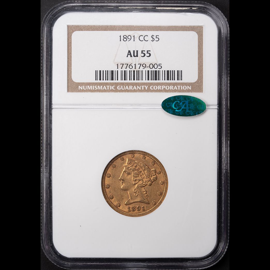 1891-CC $5 Liberty Head Half Eagle NGC AU55 CAC