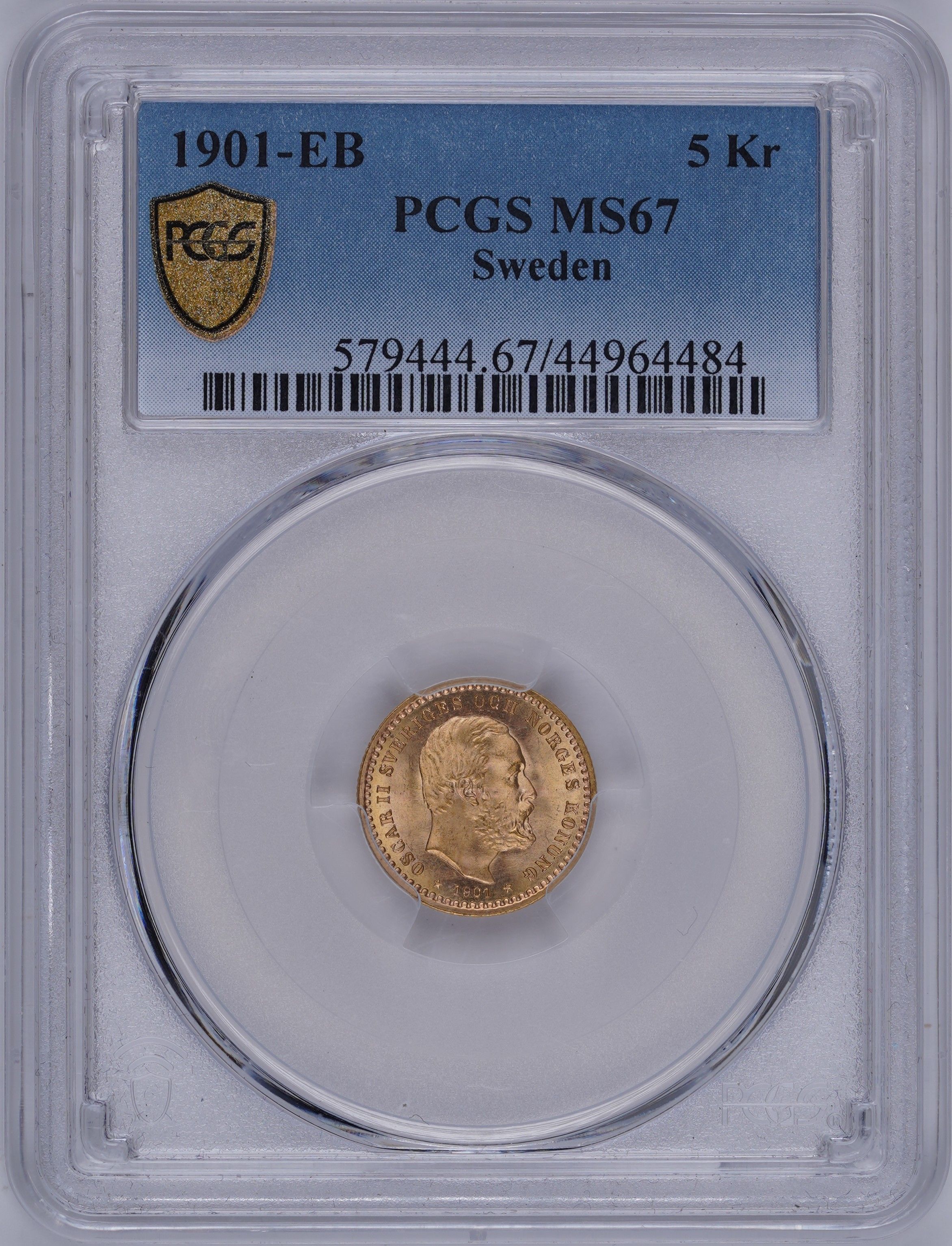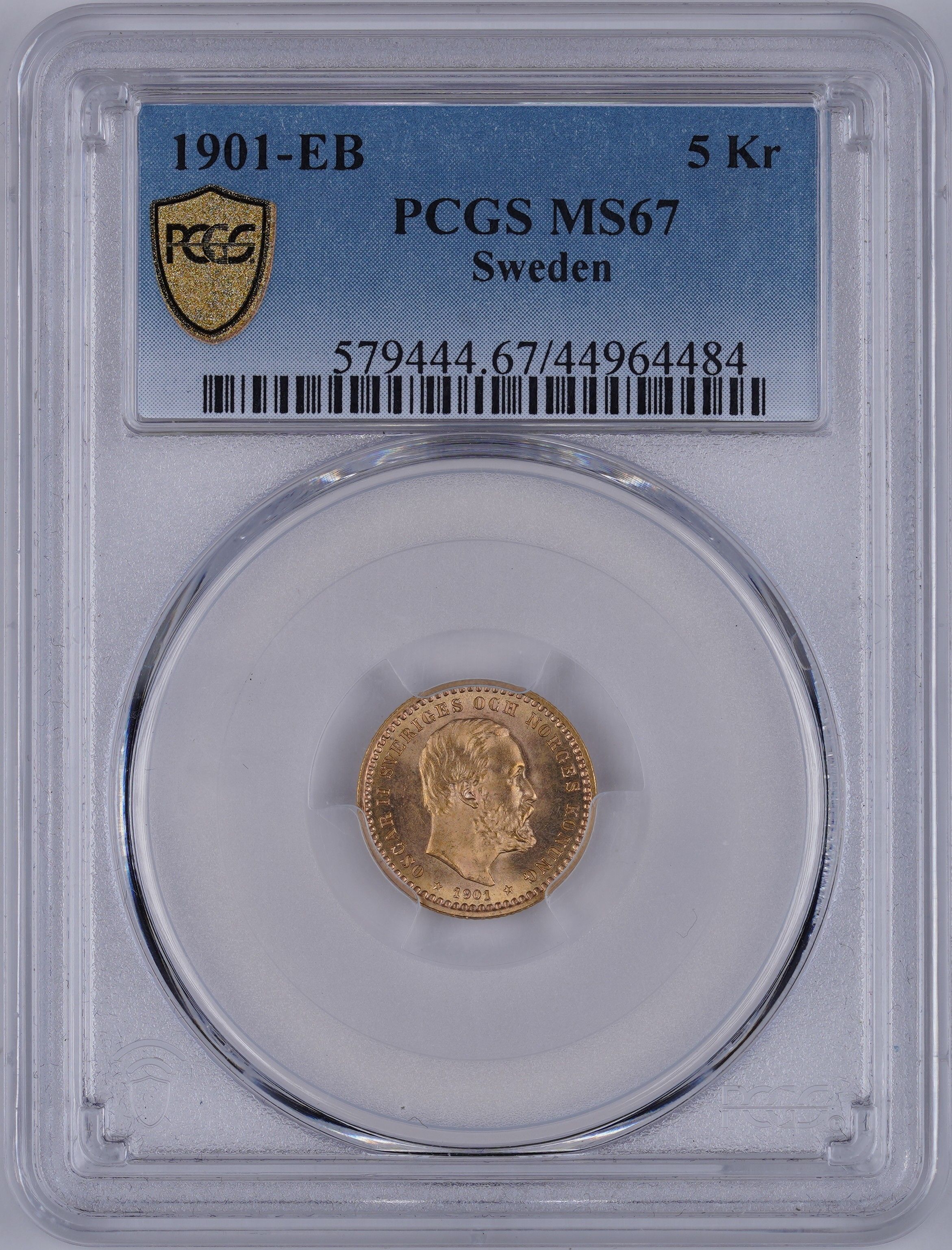 1901-EB 5 Sweden 5 Kroner Gold PCGS MS67