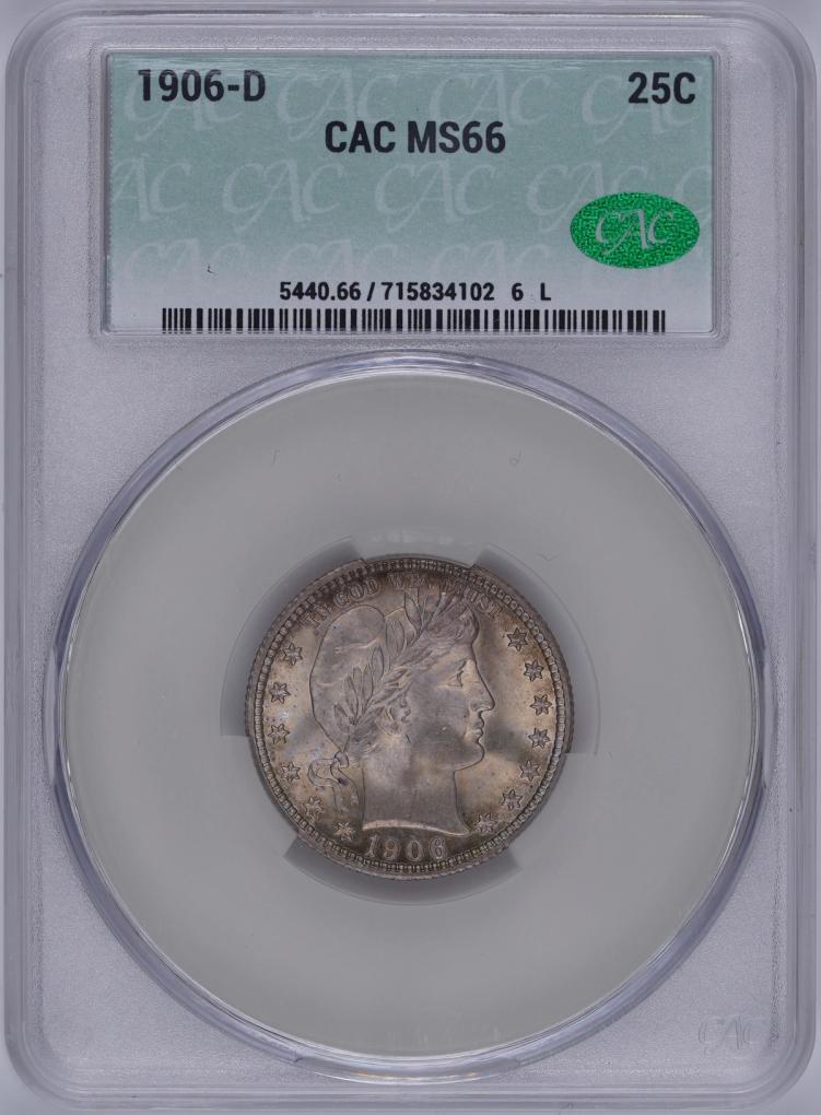 1906-D 25C Barber Quarter Dollar CAC MS66
