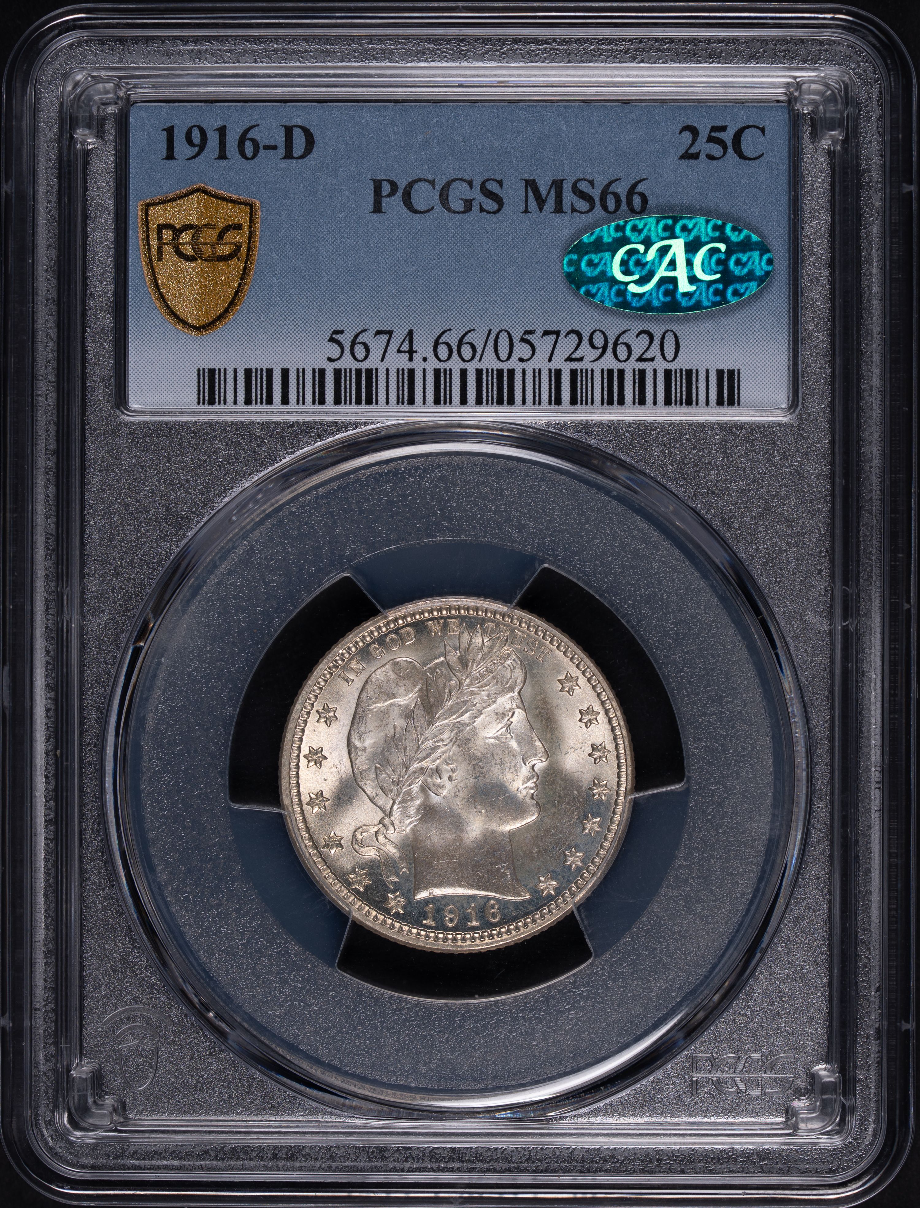 1916-D 25C Barber Quarter PCGS MS66 CAC