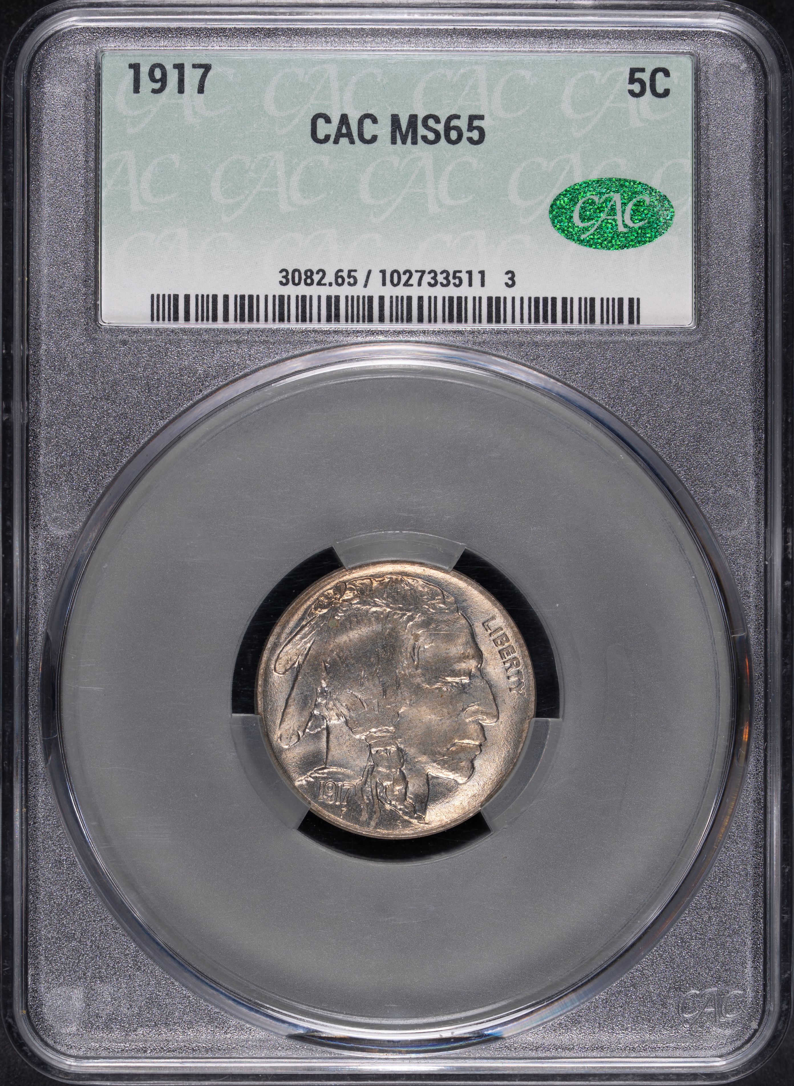 1917 5C Buffalo Nickel CACG MS65 CAC