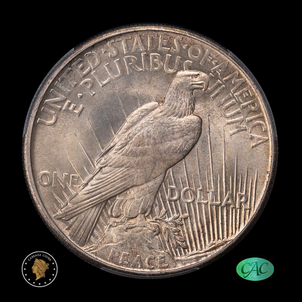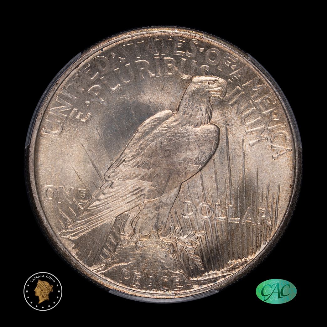If you look at other examples of the high relief peace dollar in MS65 CAC, you'll find that well struck, attractive, white examples can command crazy money - the main reason is that when it comes to this issue there is a wide amount of variability in quality of the surfaces, toning, strike and overall eye appeal. This is a one-year type (for all practical purposes) and an essential peace for your collection (pun very much intended!)