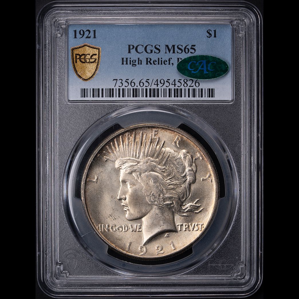 1921 $1 Peace Dollar High Relief PCGS MS65 CAC
