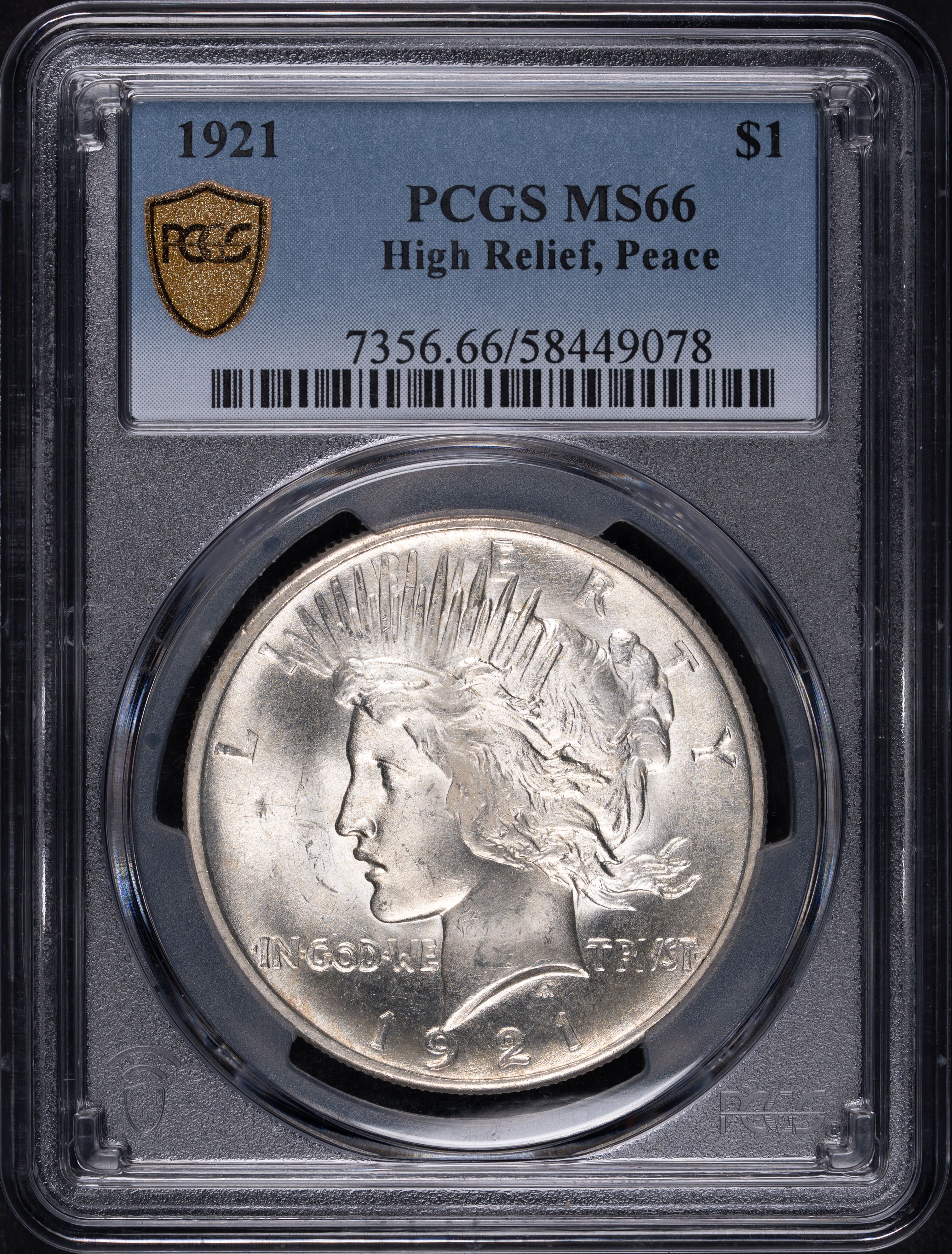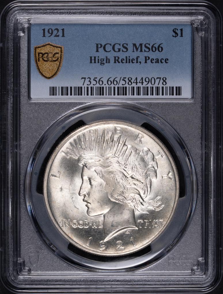 1921 $1 Peace Dollar High Relief PCGS MS66