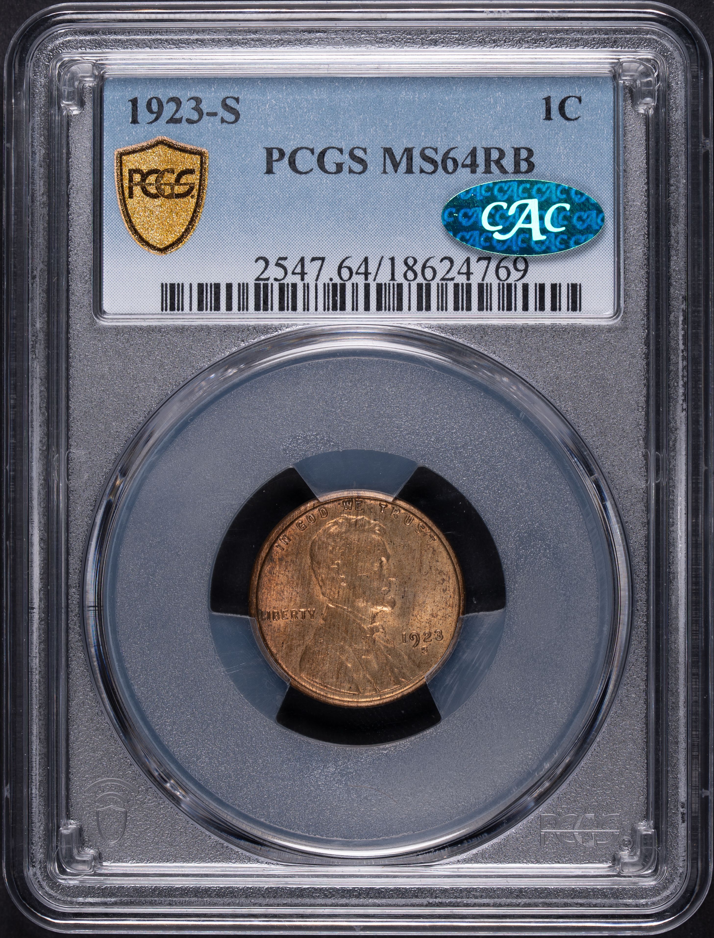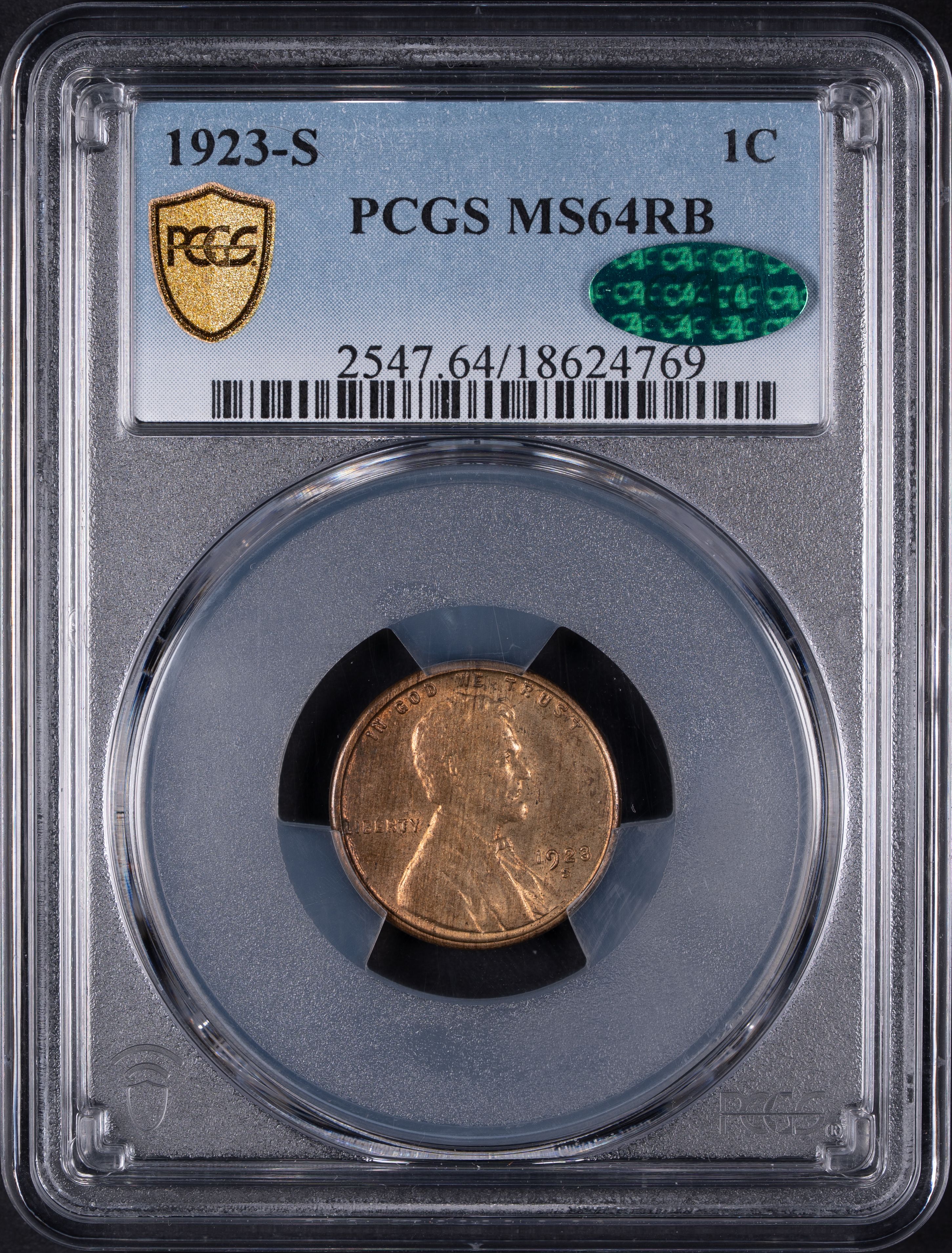 1923-S 1C Lincoln Cent PCGS MS64RB CAC