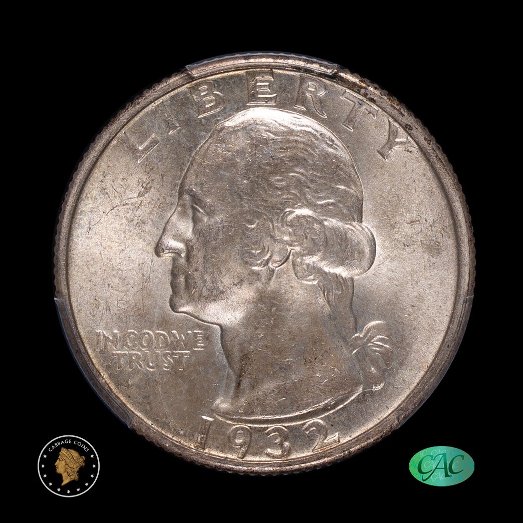 Tough and desirable in MS64 and with the CAC sticker, this 1932-S is a semi-key date for the Washington Quarter series.