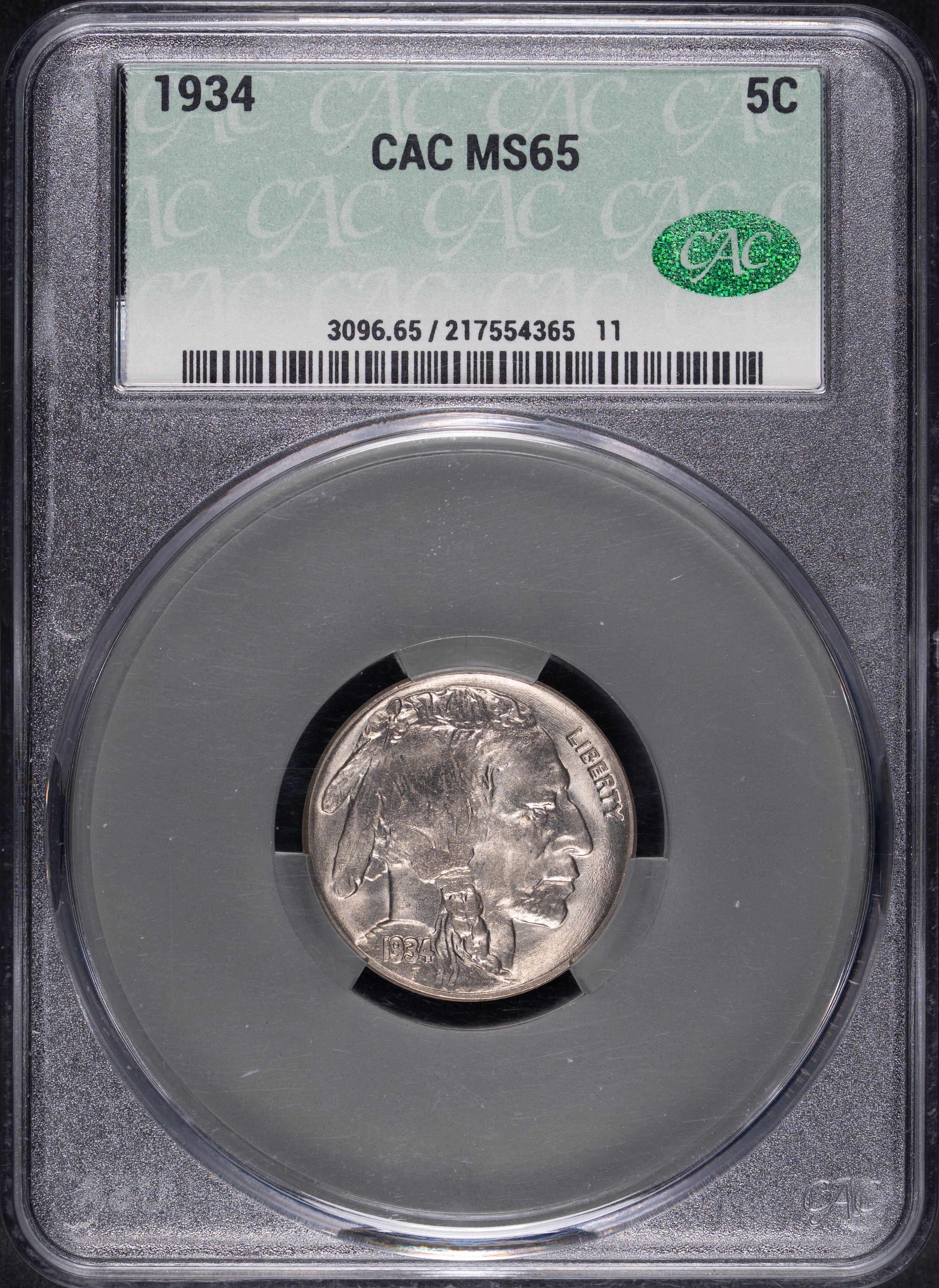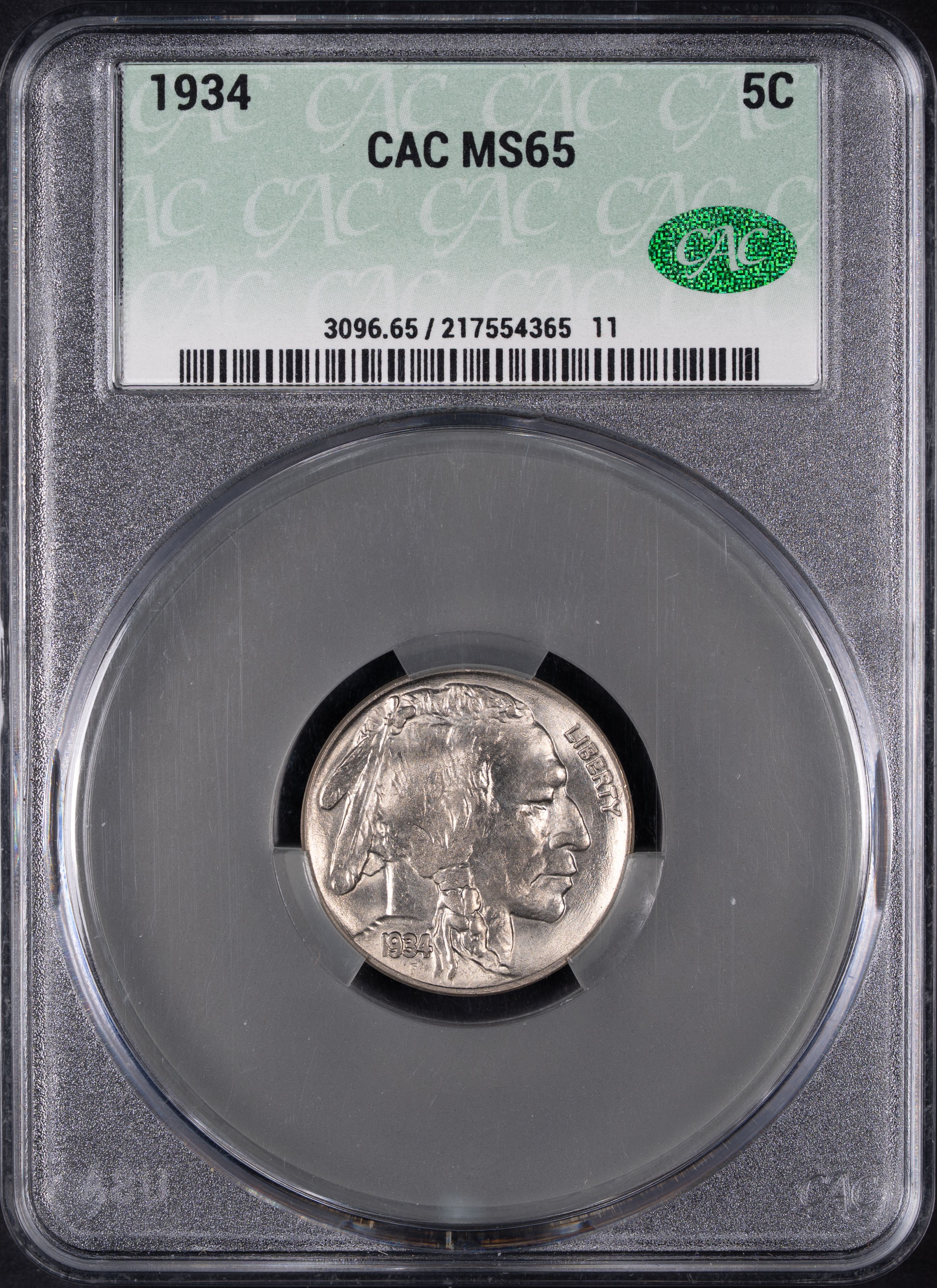 1934 5C Buffalo Nickel CACG MS65 CAC